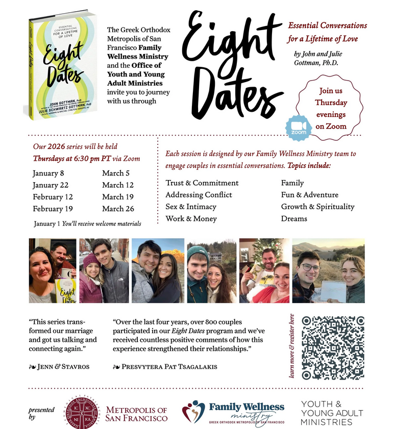 For information on upcoming couples events, please go to http://www.familywellnessministry.org/eight-dates.